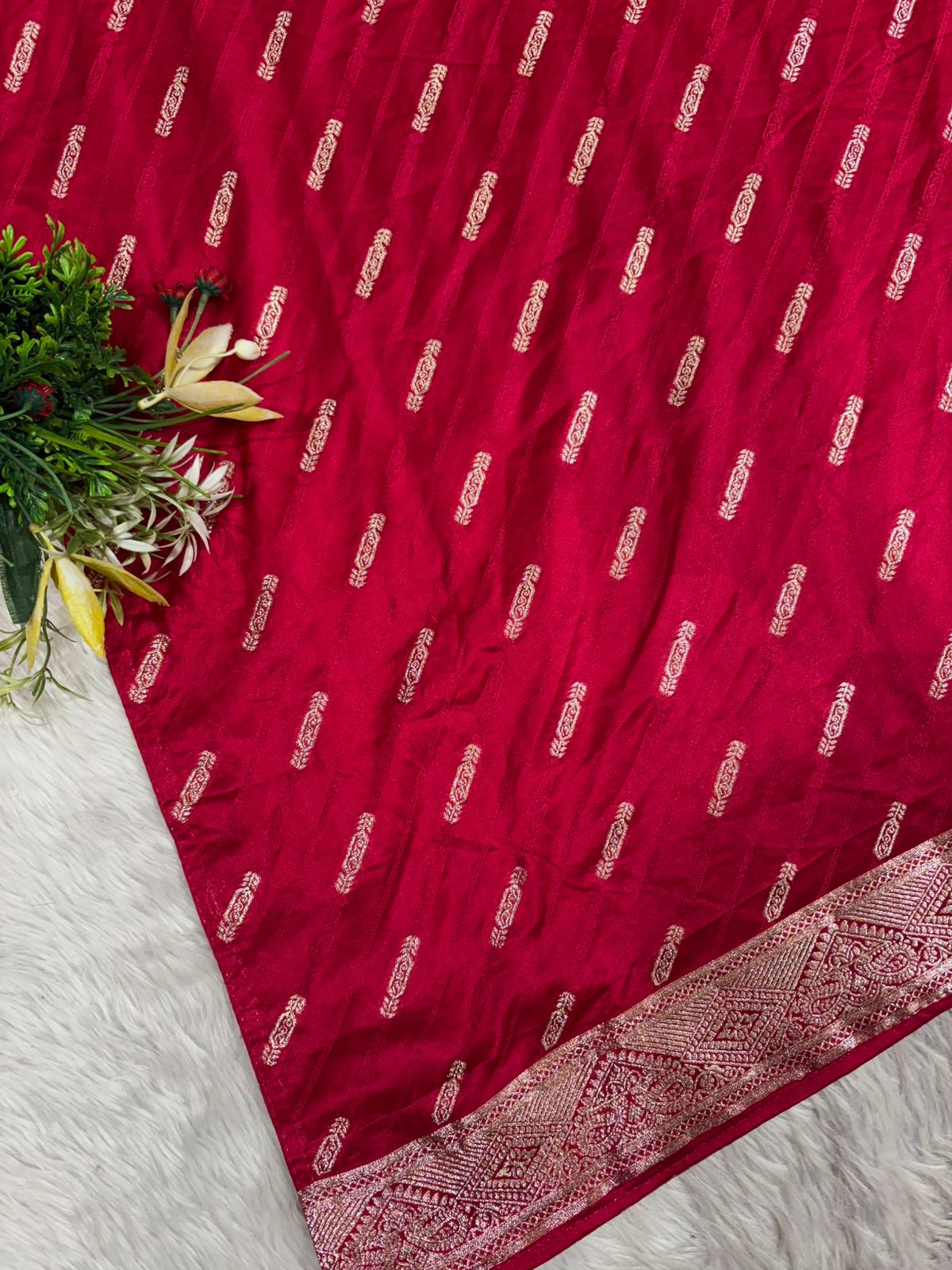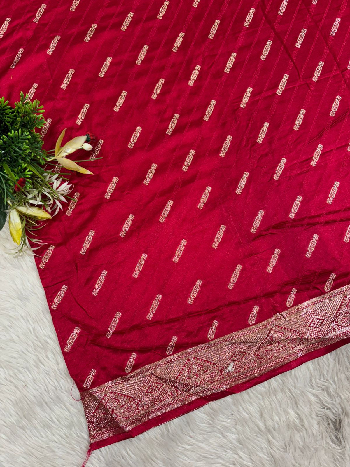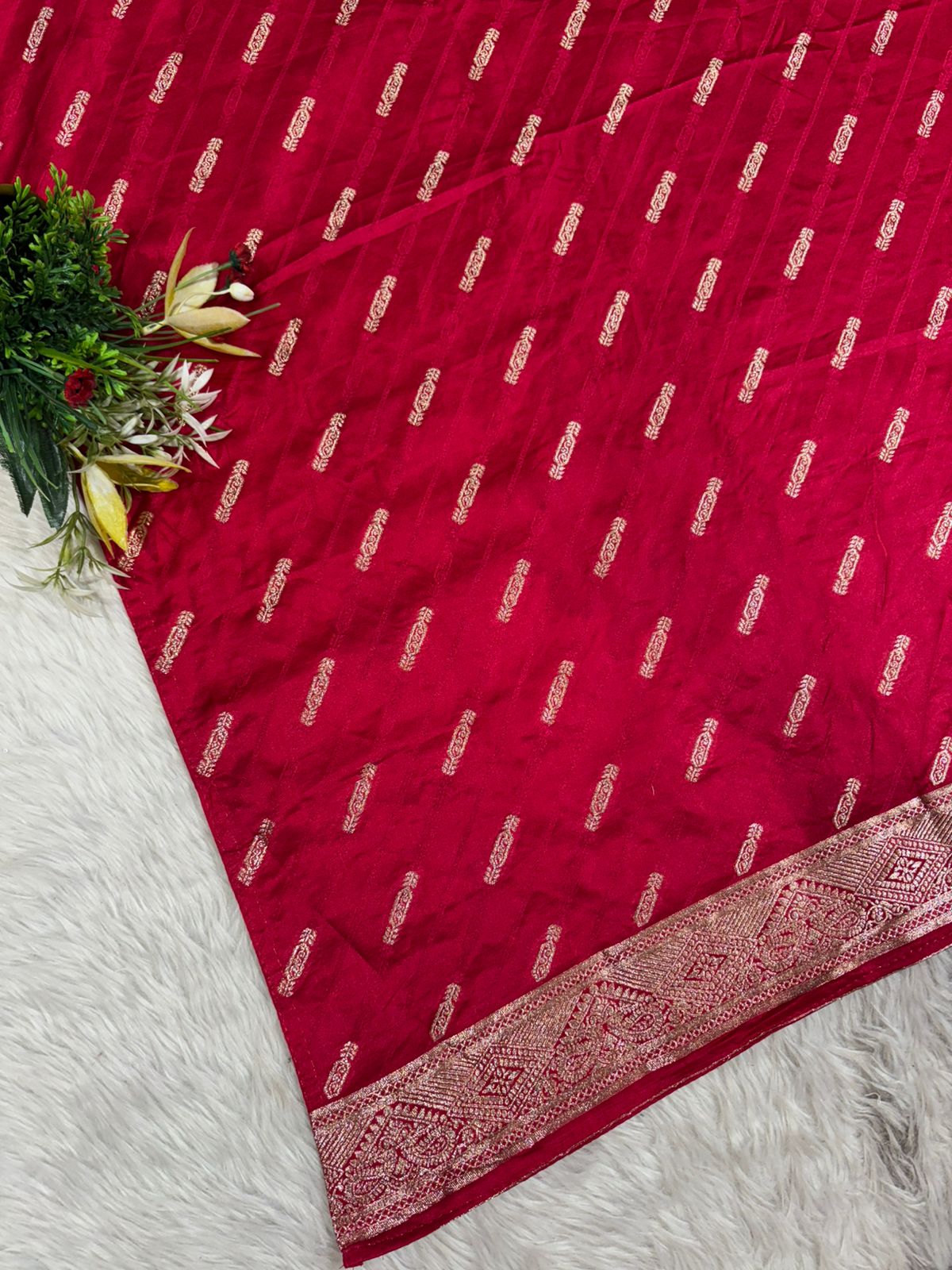 Elevate your ethnic wardrobe with this luxurious Banarasi silk saree from the house of Shagun Fashion. Crafted with intricate zari weaving, the saree features elegant diagonal patterns across the body, adding a refined festive charm. The pallu showcases rich floral and paisley brocade motifs, finished with stylish tassels that bring a graceful flow to your drape. An intricately woven broad border frames the saree, highlighting its classic appeal. Paired with a matching brocade blouse piece, this ensemble offers the perfect balance of tradition and sophistication. Ideal for weddings, festivals, parties, and cultural events, this timeless saree from Zankhi Boutique by Shagun Sarees is designed to make you stand out effortlessly. Perfect for the woman who cherishes elegance with a touch of heritage. 🌟🧡