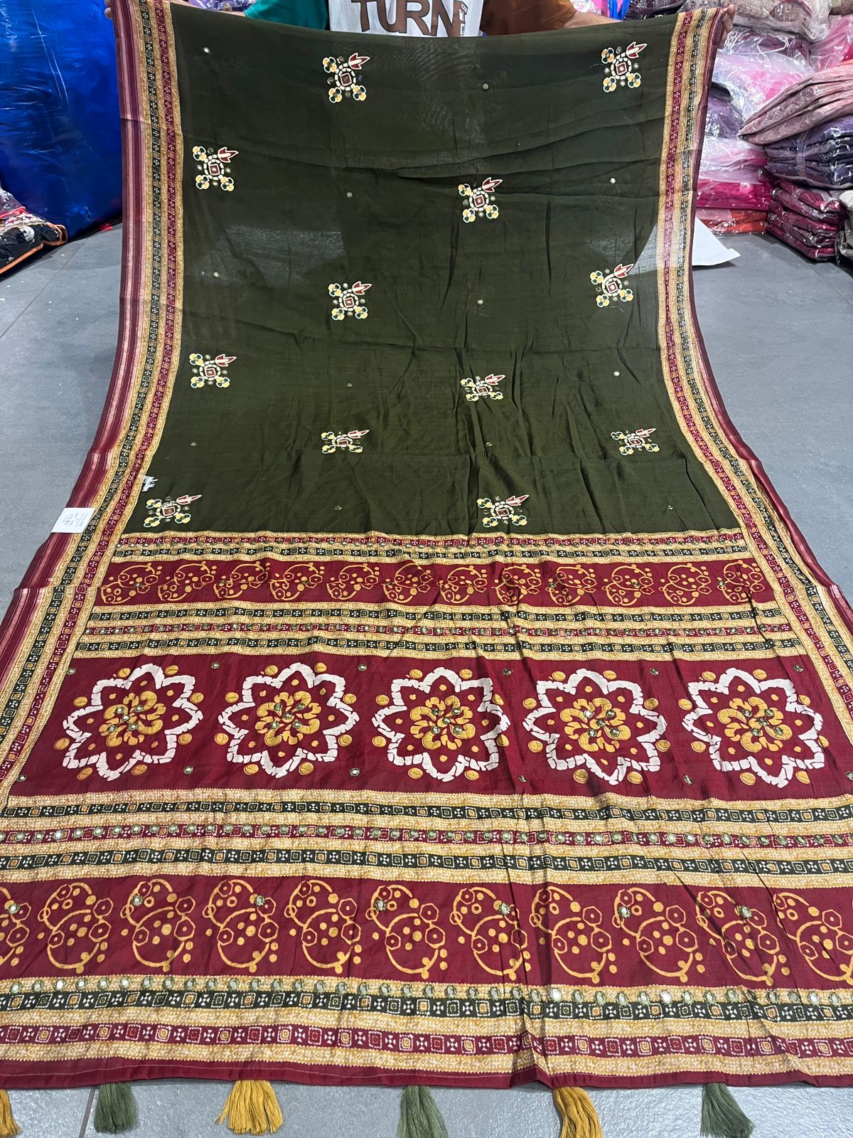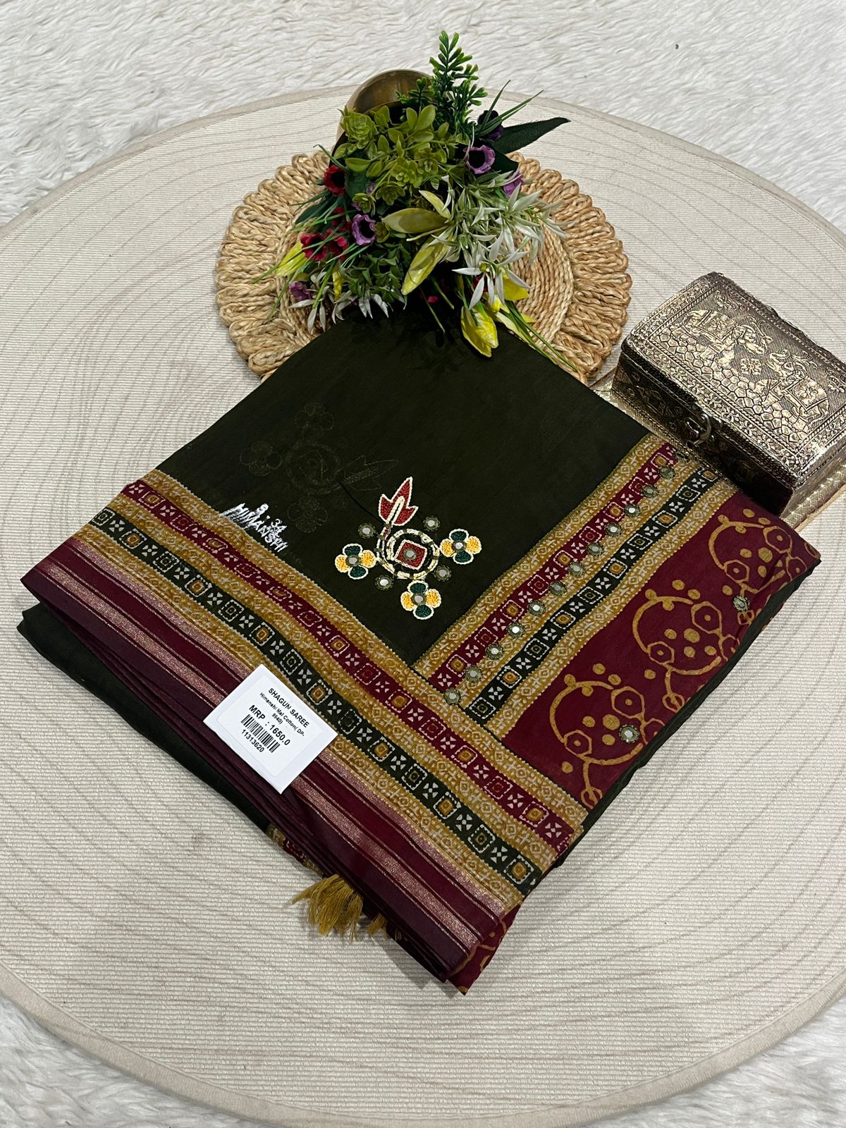 Embroidered Saree with Floral Pallu & Tassels