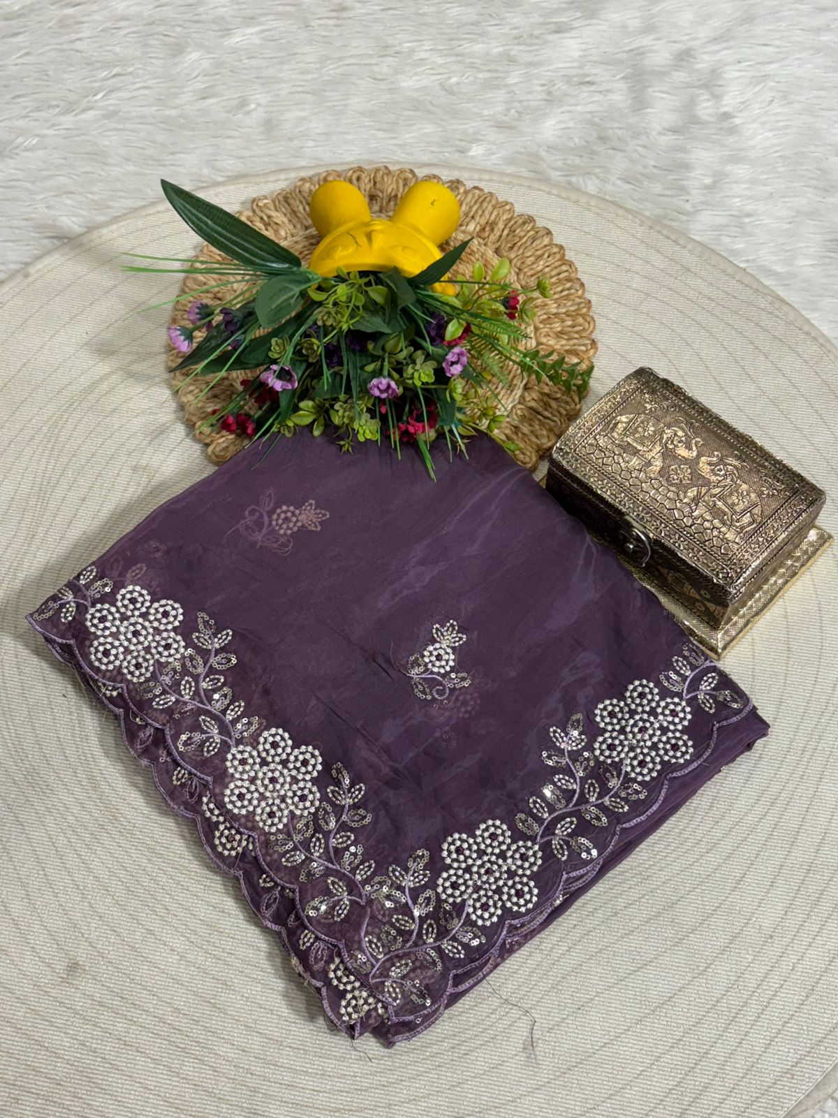 Organza Party Wear Saree | Embroidered Beaded Border | Shagun Sarees Exclusive