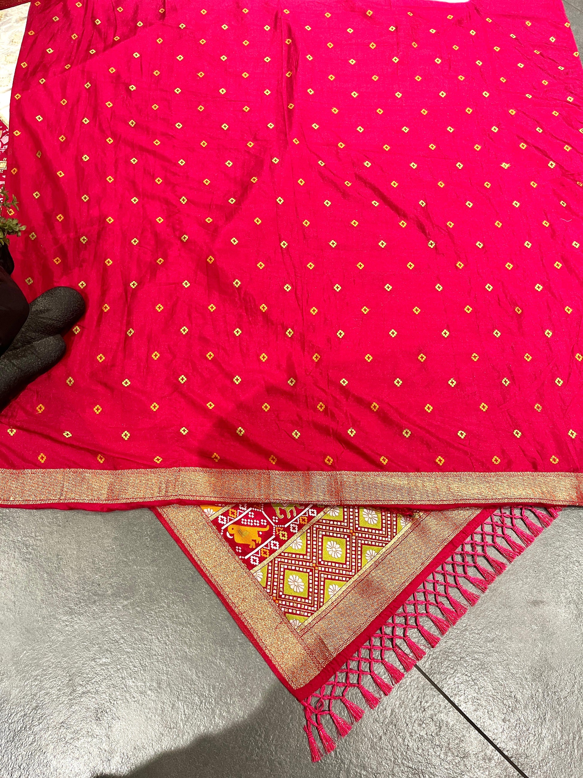 Patola Silk Saree with Golden Zari & Elephant Motifs