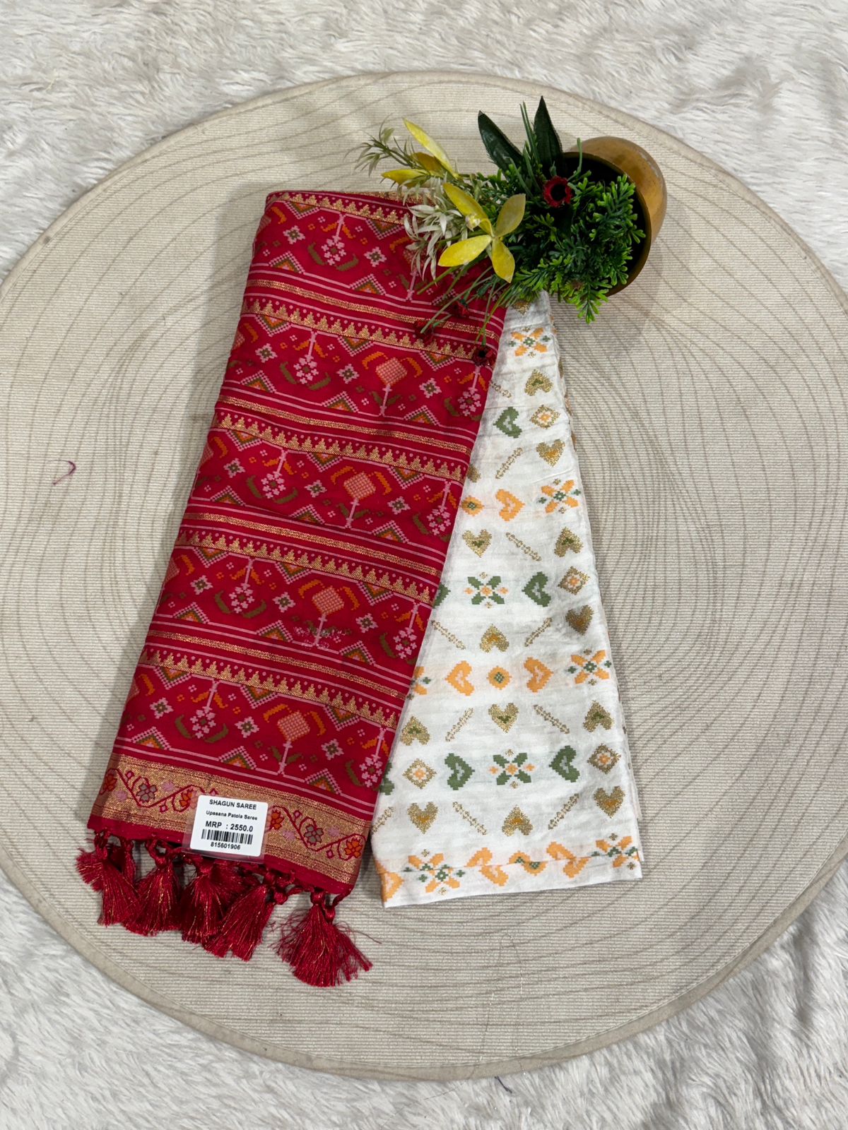 β¨ Step into elegance with this stunning Semi Patola Saree by Shagun Fashion, crafted in a beautiful double tone color combination that radiates tradition and luxury. Made from semi-silk fabric, this saree offers the grandeur of a pure Patola at a budget-friendly price.
